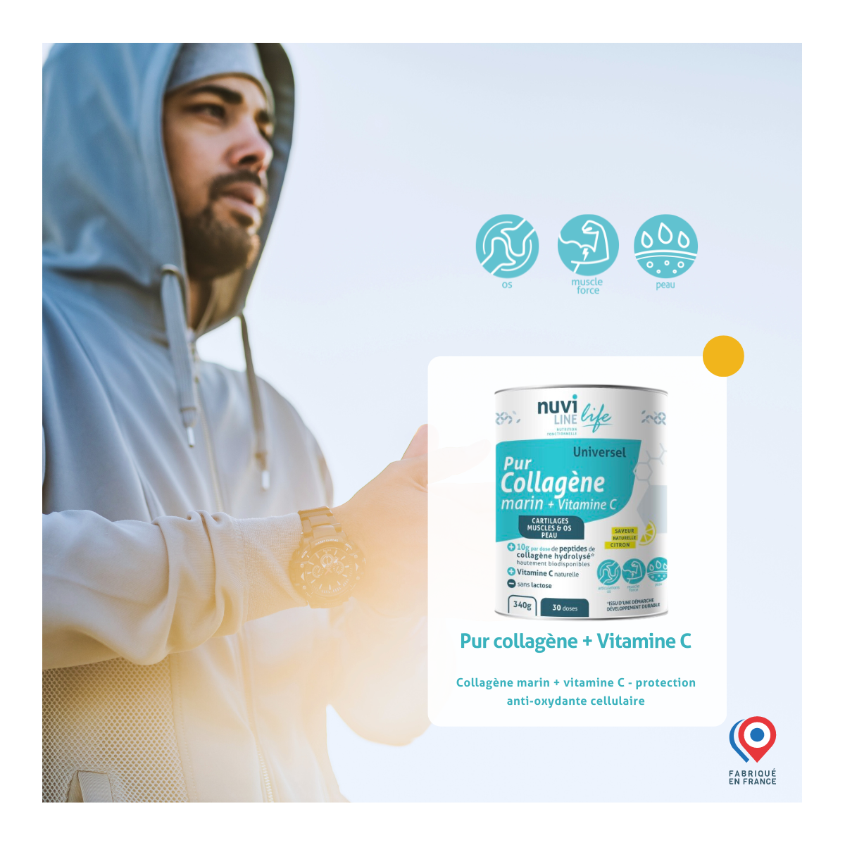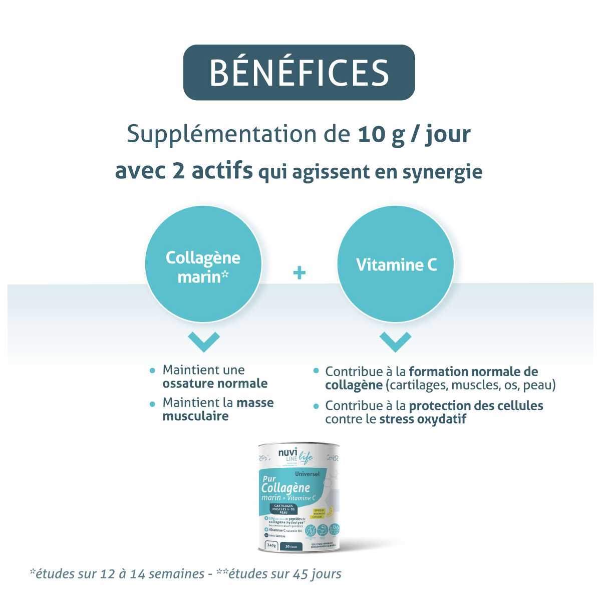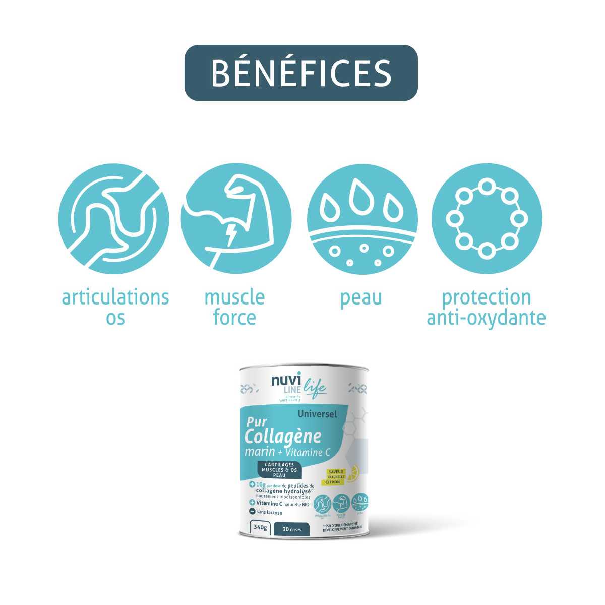 Le collagène a donc un rôle majeur dans la prévention et la prise en charge des troubles articulaires et effets du vieillissement cellulaire, mais également dans la prévention de la prise de poids, la prévention des risques liés au sport, du bien-être intestinal et de la santé et de l'anti-âge en général.