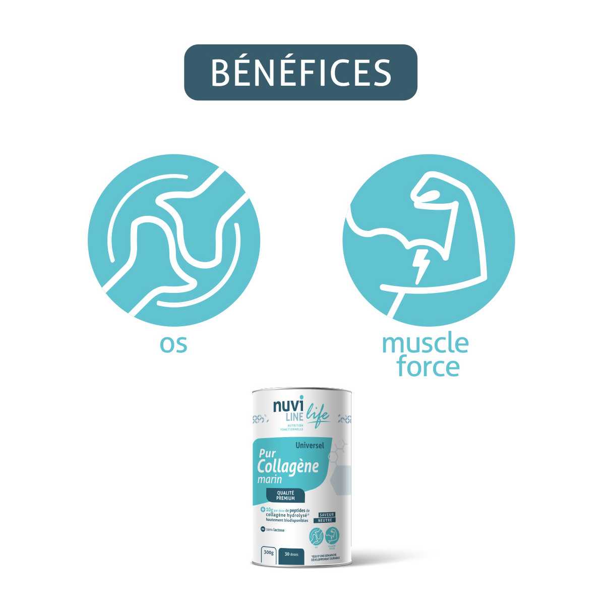 je ne peux tout simplement plus me passer de mon collagène marin trois jours après la première prise mes doigts qui étaient tous raides ont retrouvé leur élasticité ma peau est belle, mes cheveux poussent vite et mes ongles aussi mais surtout je le sens au quotidien sur ma santé car il y a 5 mois j'ai eu une fissure du ménisque et grâce au collagène elle se résorbe sans rien faire ok beaucoup de douleurs mais je gère merci au collagène mon meilleur ami
