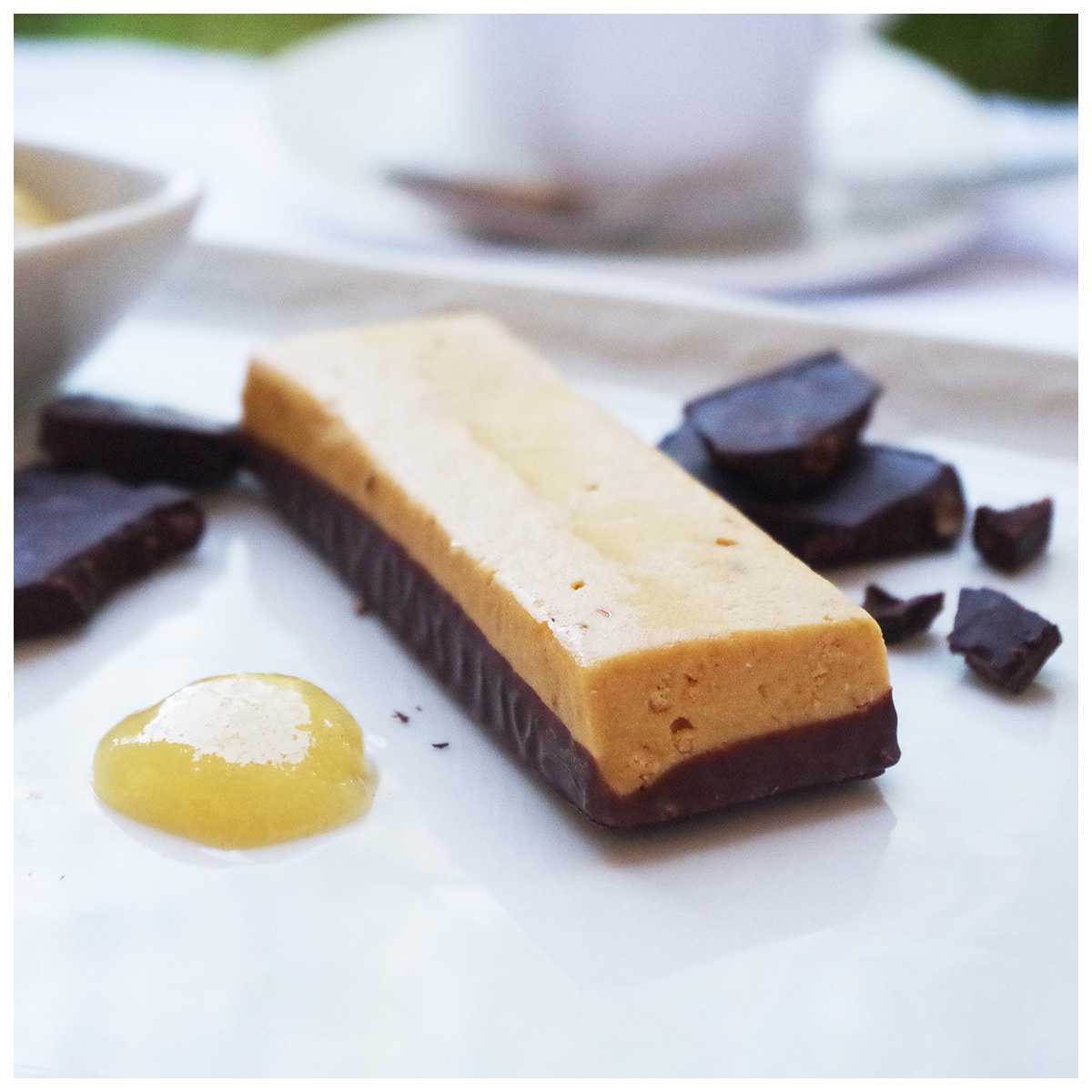 Barre confiture de lait, riche en protéines, réduite en sucre