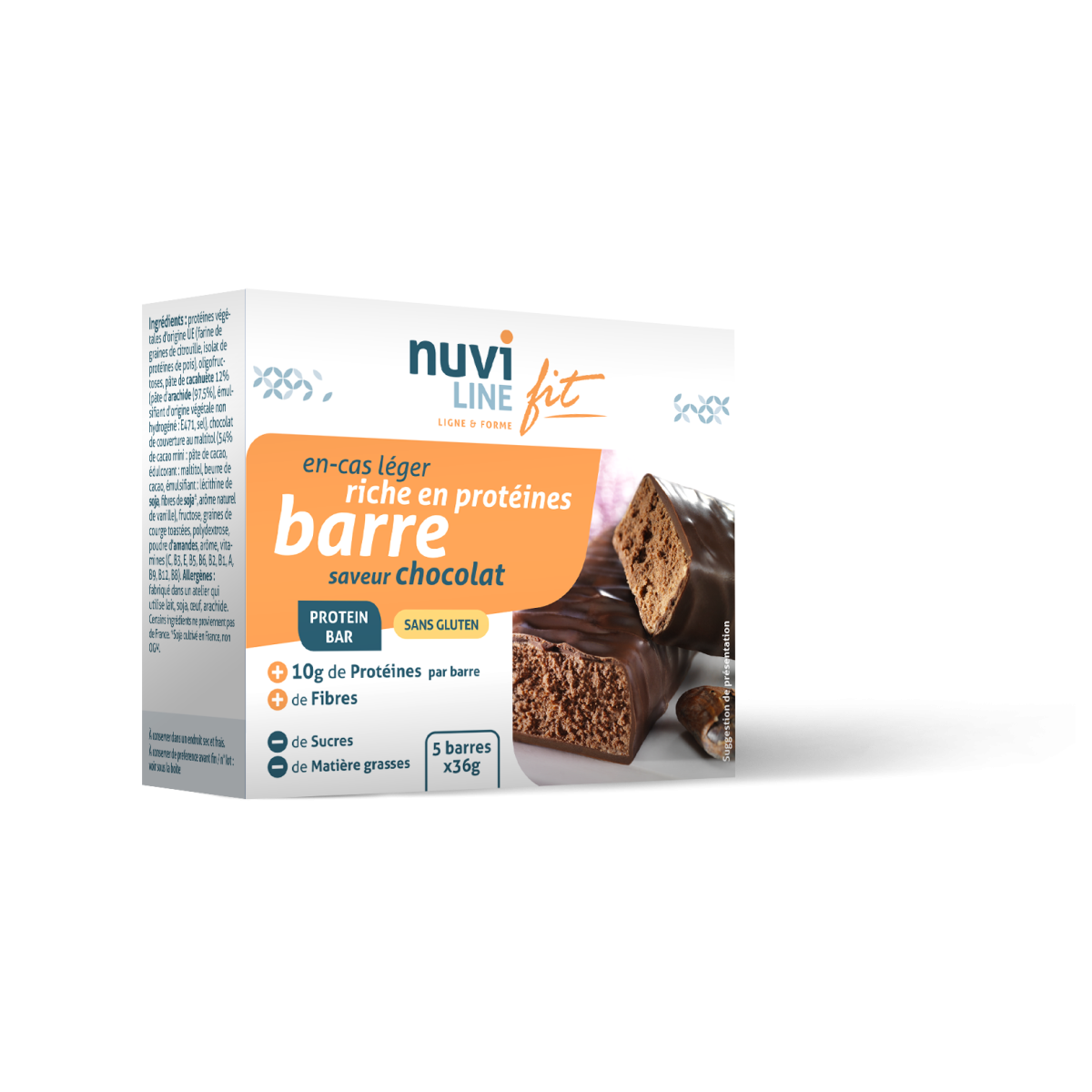 * -80% de sucres, -40% de matières grasses et -30% de valeur énergétique par rapport aux barres chocolatées classiques