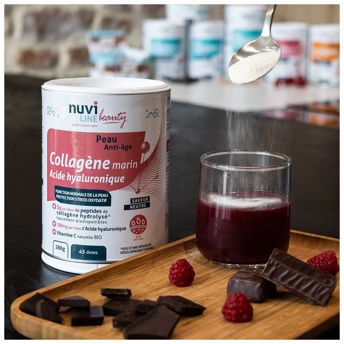 Il a une action nourrissante "de l'intérieur" : il peut ainsi être utilisé en complément d'une solution topique (ex. crème cosmétique) dont l'effet est obligatoirement limité en application sur la peau car la barrière cutanée empêche l’absorption des actifs considérés comme étrangers au corps. En revanche, lorsque l’on boit ou que l’on ingère du collagène, la majeure partie est absorbée par les parois intestinales et utilisée correctement par la peau.